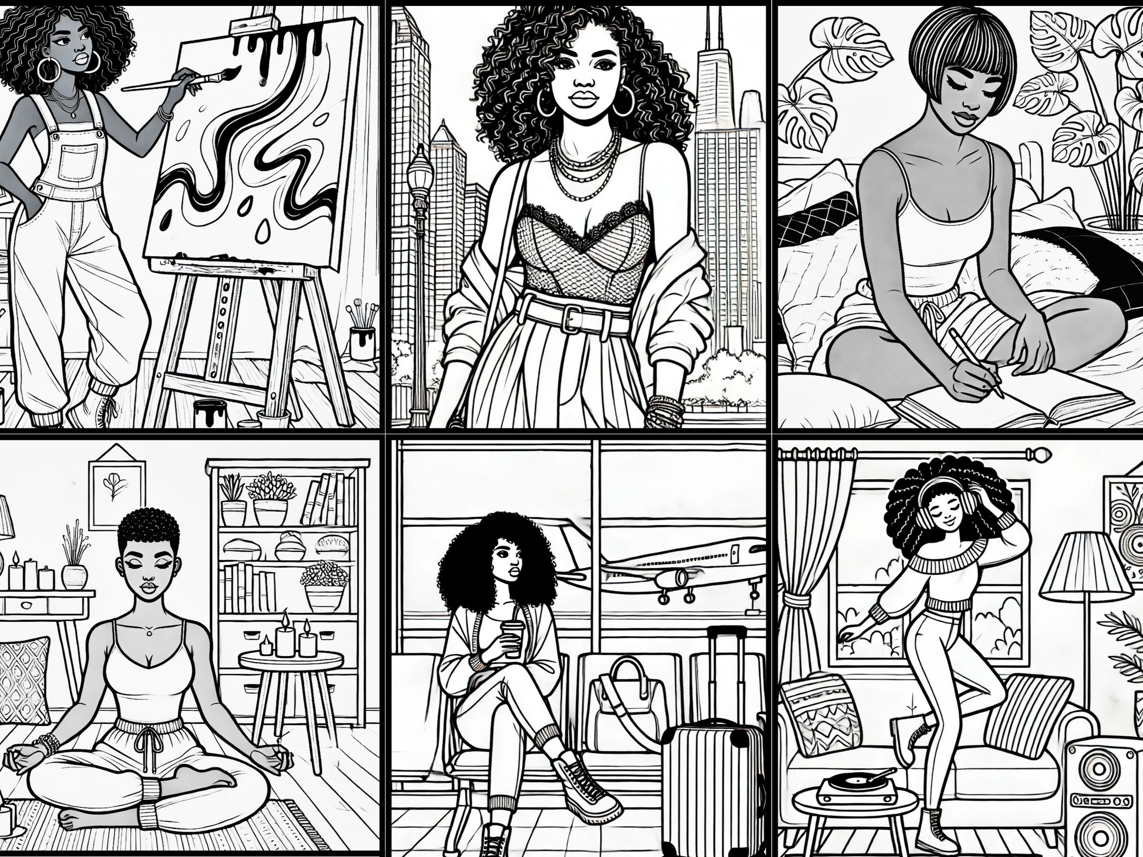 Discover coloring books filled with florals, mandalas, home décor designs, and empowering images that celebrate Black women.